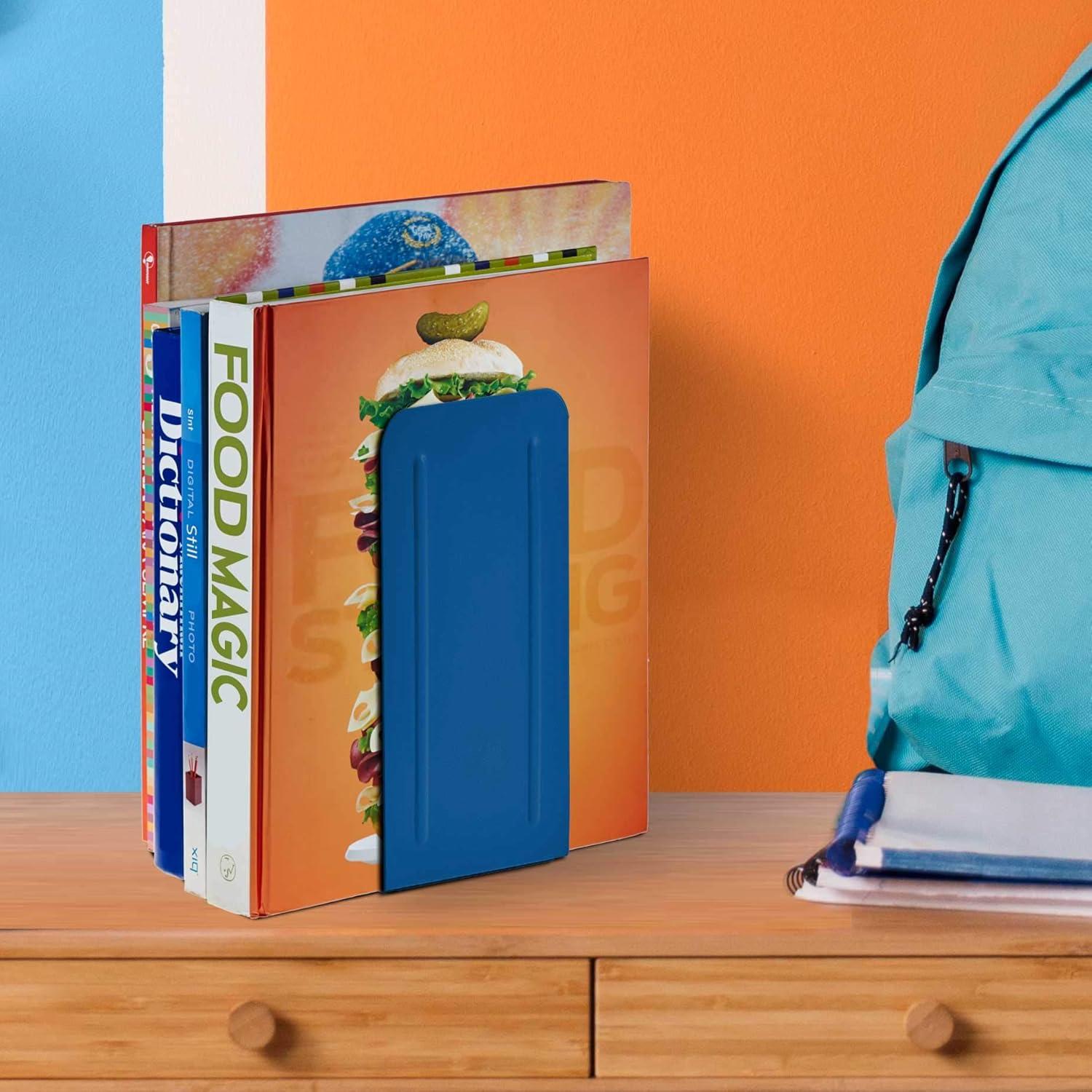 Acrimet Metal Bookends, Jumbo Size 9″ H x 4″ W x 4-1/2″ D, Non-Skid Book Stand for Shelves, Heavy Duty Book Stopper, Deep Blue, 1 Pair (Pack of 2)(9″ H x 4″ W x 4.5″ D (Pack of 2))